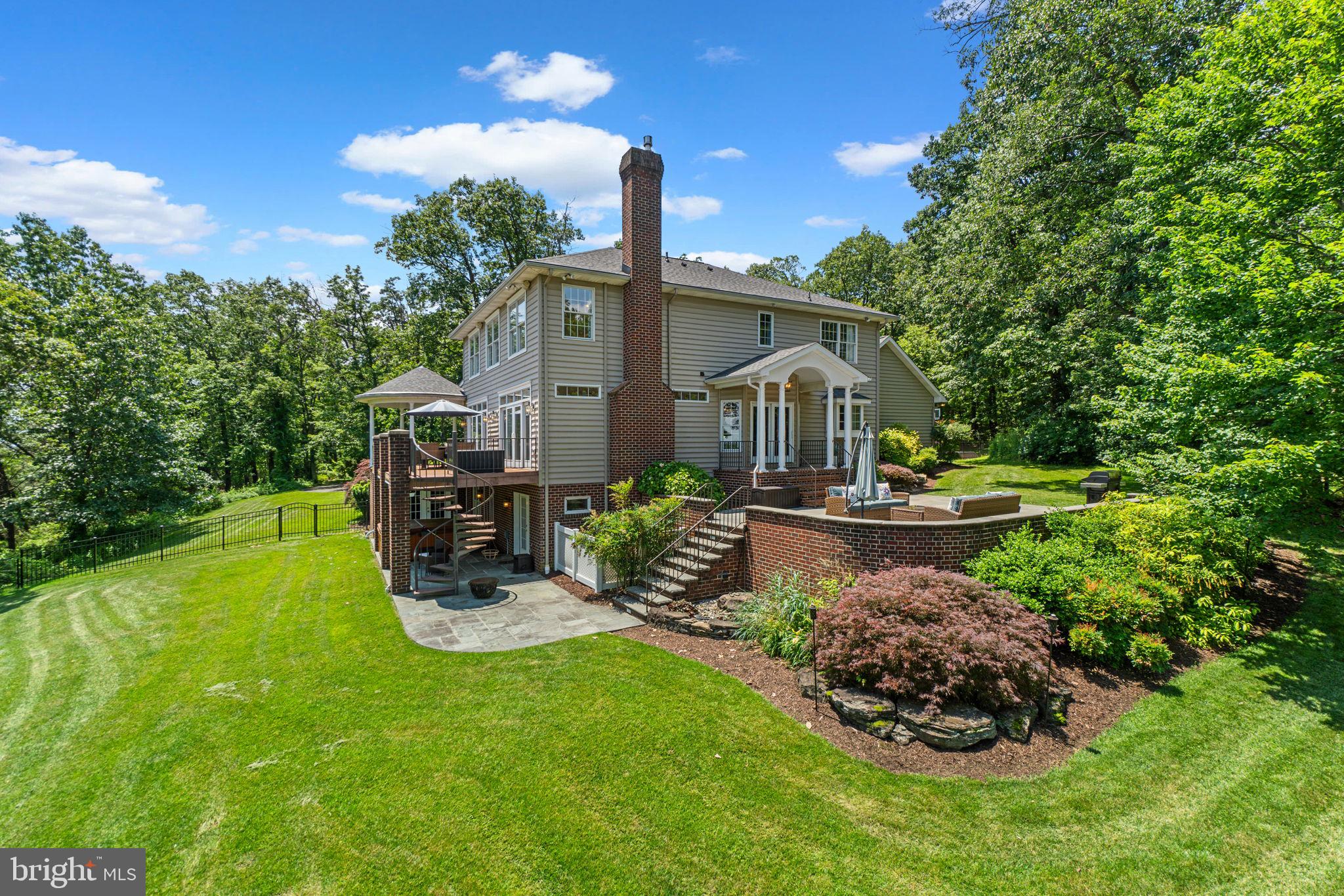 ACREAGE, PRIVACY, MOVE IN READY, and PRICED TO SELL QUICKLY. This home is sure to check all the boxes. Set on nearly 10 private acres, this stunning custom built, colonial style home offers an elevated lifestyle with breathtaking views from the perch it sits upon overlooking the city of Frederick. This home blends timeless charm with custom design and expansive indoor-outdoor living. Beautiful landscaping and elegant stonework surround the property, which features a grand two-story barn, a wraparound deck, huge stone patio with a spiral staircase, gazebo, and a hot tub retreat. A column-framed entry porch and a wide stone terrace invite guests to enjoy the serenity and space that make this home ideal for entertaining and relaxing alike. Recent improvements such as new roof and composite decking in 2025 and approx. 1.5 acres of fenced in yard. Inside, the residence showcases sun-drenched rooms, refined finishes, and classic style. The main level offers a beautiful foyer just as you enter from the decorative front entry. To the right is the formal living room with French bifold doors and atrium windows that open to the outdoor spaces. To the left of the foyer is the formal dining room with hardwood flooring and detailed trim provides the perfect setting for hosting. The chef's kitchen has been recently outfitted with all new appliances (2024), granite counters, a central island, breakfast bar, garden window, and a cozy dining nook that looks out to the enormous flagstone patio. The heart of the home is the expansive family room--complete with a fireplace, built-in lighted cabinetry, and seamless access to the deck--ideal for both everyday living and large gatherings. Additional highlights on the first floor include a private study with pocket doors, a stylish powder room, and a large functional laundry room with sink. Upstairs, the primary suite offers a peaceful retreat with dual closets, dressing space, and a luxurious en-suite bath featuring a jetted tub, dual sinks, and glass-enclosed shower. Three huge secondary bedrooms with plenty of closet space and two full bathrooms round out the upper level. The finished lower level expands the home's livable space with beautiful hardwood floors, an enormous recreation area, second fireplace, full wet bar with built-in appliances, bar seating, a large den, full bathroom, and ample storage. Combining space, style, and panoramic natural beauty, this extraordinary home delivers a rare opportunity to enjoy refined country living in a one-of-a-kind setting.