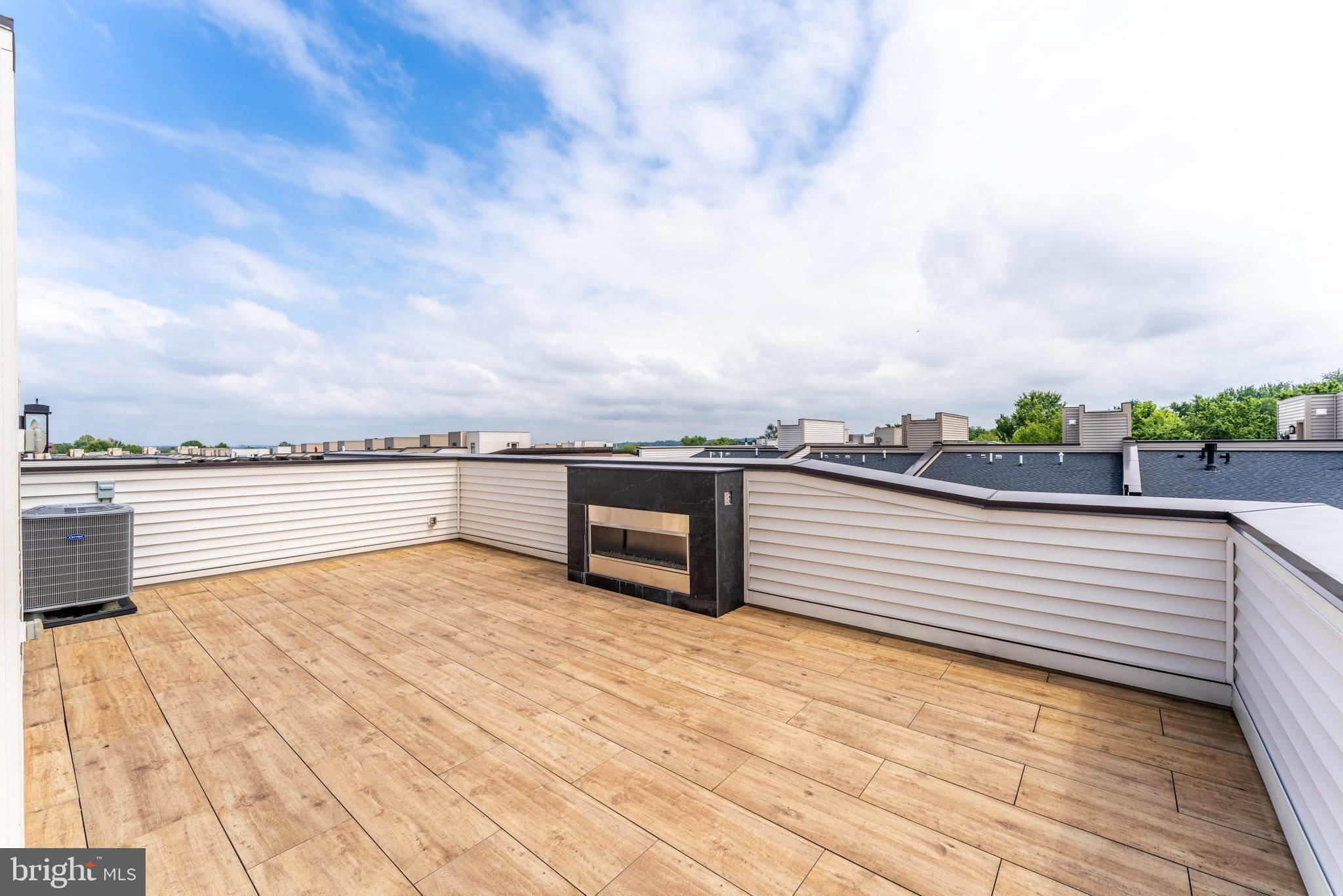 The top-level retreat is crowned by a dramatic rooftop deck with a gas fireplace and panoramic views. Additional highlights include smart home automation with CAT6 and HDMI wiring, a security system, and remote-controlled window shades on the main and terrace levels.